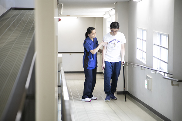 運動療法や物理療法を用いて、運動機能の改善や起き上がる・座る・立つ・歩くなどの日常生活の移動面を中心とした訓練を行います。訓練室だけでなく、生活の場である病棟においても日常生活と移動を一連のものとして、積極的に働きかけることで円滑な日常生活が送れるように支援します。