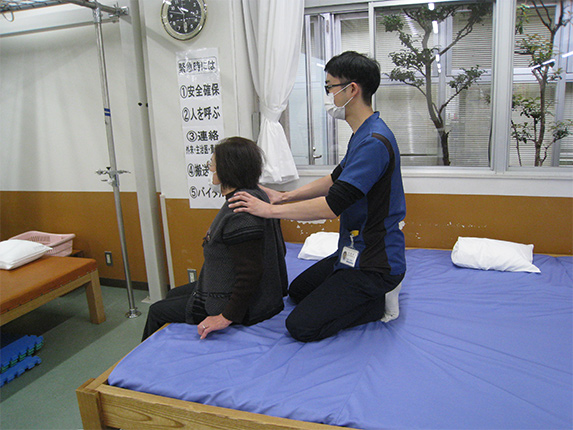 医療療養病棟入院中の方や介護保険の通所リハビリテーション(デイケア)を利用の方に身体機能や生活動作の維持や再発予防を目的に理学療法・作業療法を行っています。